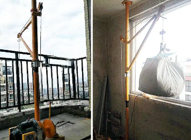 房屋建筑的窗戶窗口有大小之分,大窗戶視野效果好,可以一覽無遺,小窗戶保溫效果好,但是在窗口吊運物料時多有不便。有沒有一種裝修吊運機可以不受窗口大小的影響呢?